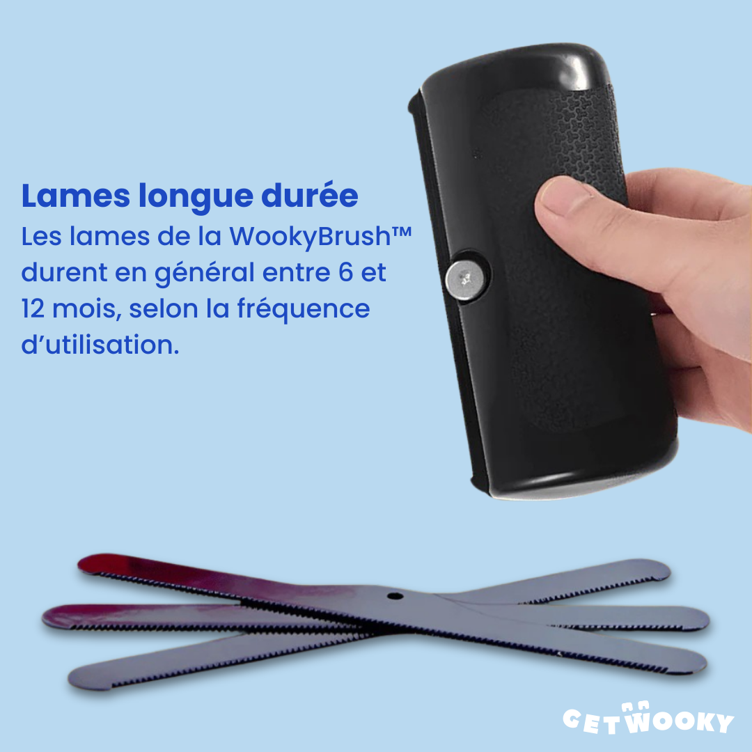 Les lames de la WookyBrush™ durent généralement entre 6 et 12 mois, selon la fréquence et l’intensité d’utilisation.
