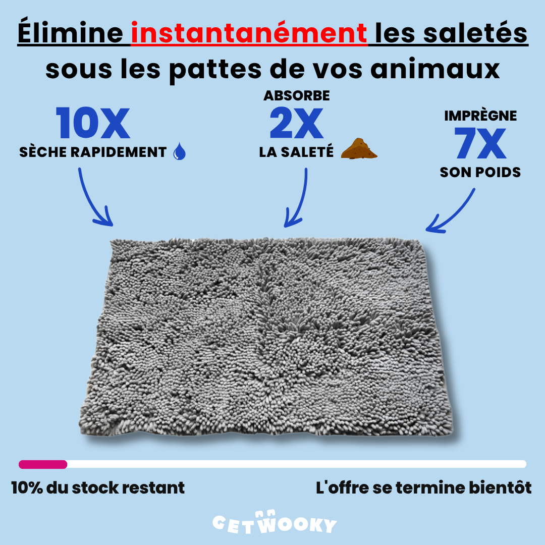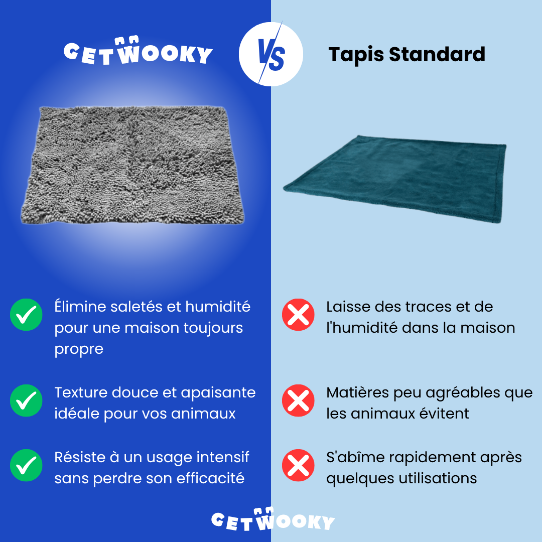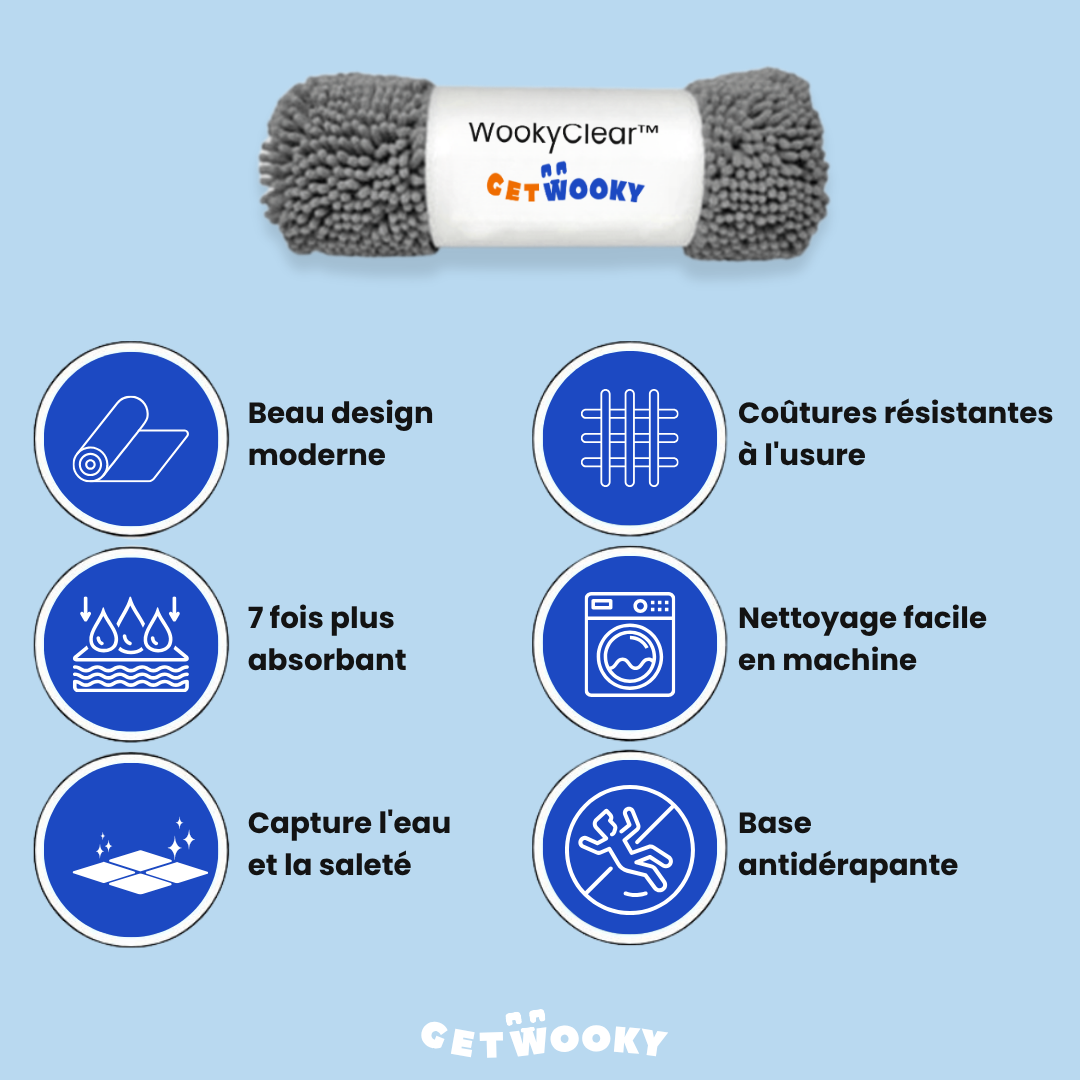 Protégez votre intérieur des pattes sales. À la différence des tapis classiques, notre tapis WookyClear™ possède une capacité d'absorption supérieure, capturant 7 fois plus de saleté et d'eau, pour des pattes nettes et un sol impeccable.