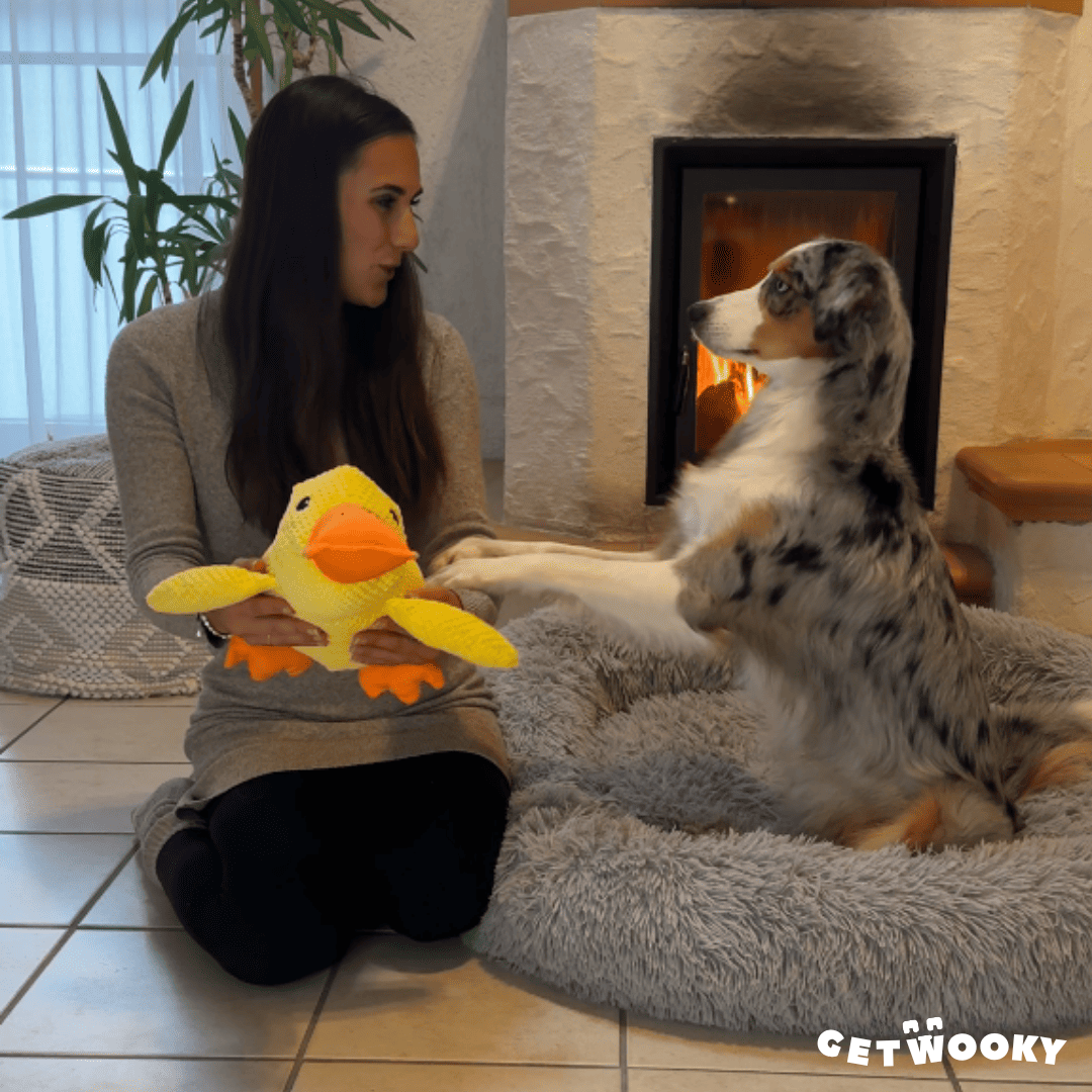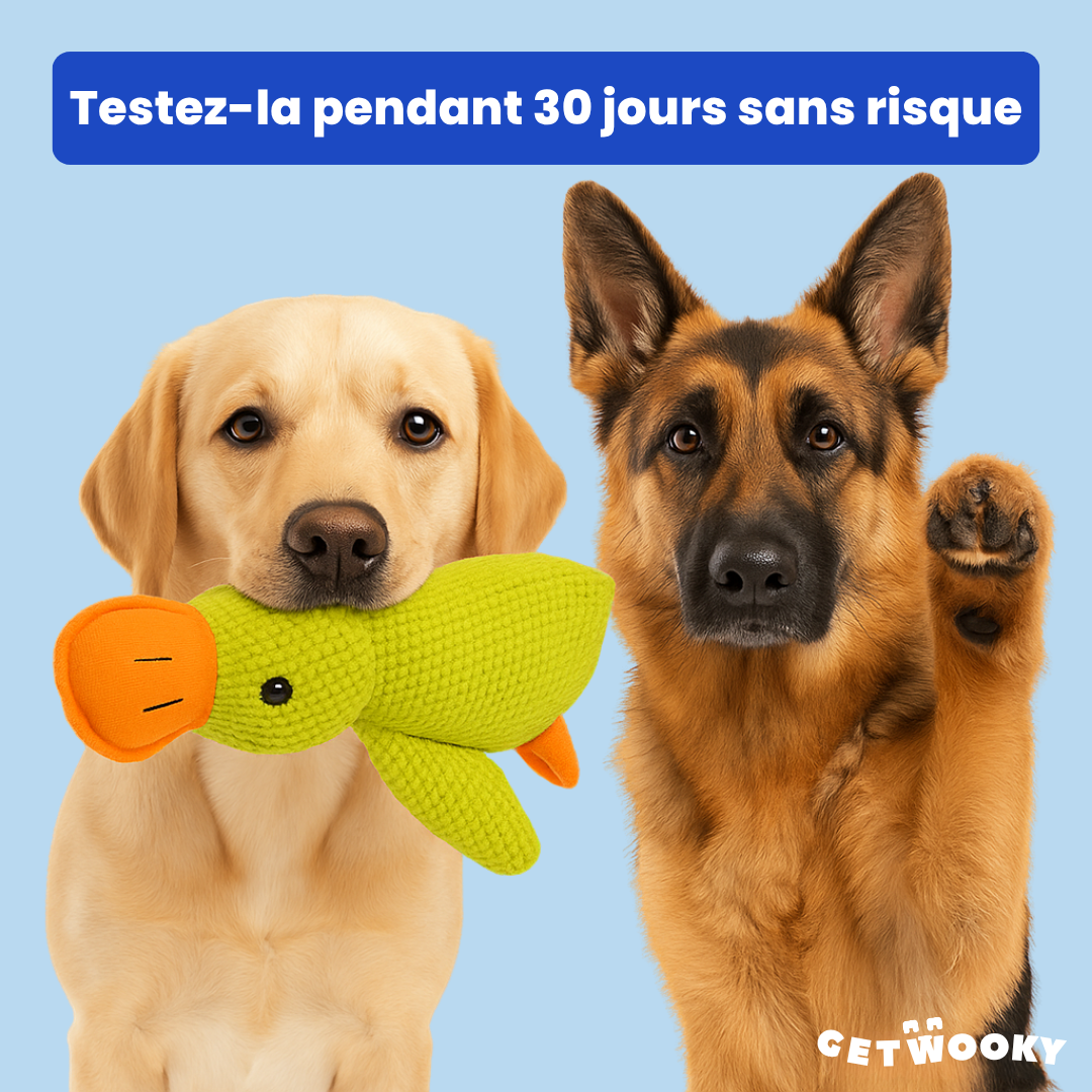 Le WookyZen™ apporte à votre chien une profonde relaxation et un jeu sans stress. Grâce à son couinement apaisant et à sa couleur spécialement étudiée pour les chiens, il aide à réduire le stress et à favoriser un sentiment de calme intérieur. Conçu en matériau durable et résistant aux morsures, il convient à toutes les races de chiens.